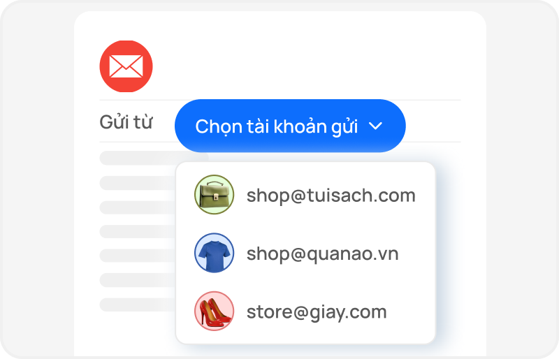 Doanh nghiệp quản lý nhiều email trên Subiz cần chọn một email gửi đi khi thực hiện chiến dịch.