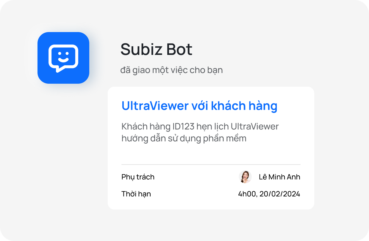Subiz Task (tính năng nhắc việc) giúp cá nhân, đội nhóm hay cả tổ chức xây dựng và theo dõi kế hoạch công việc, nhằm đảm bảo tiến độ và hiệu quả công việc.
