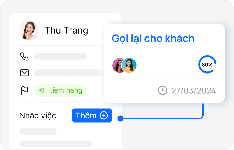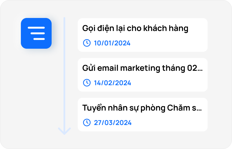 Tính năng nhắc việc giúp xây dựng và quản lý lịch trình công việc của agent, đảm bảo tiến độ công việc.