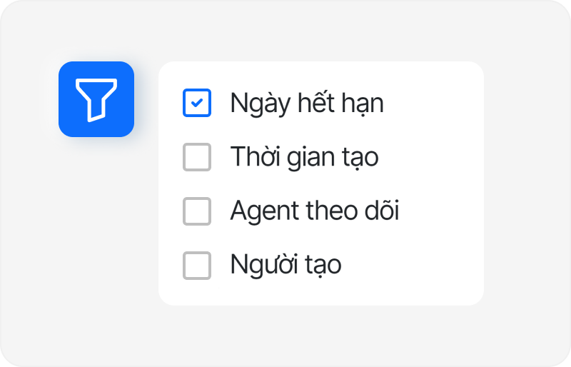 Agent tùy chọn sắp xếp công việc theo thời gian tạo, hoặc theo deadline.