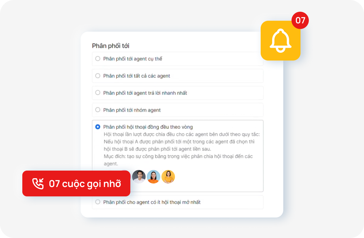 Hệ thống tự động phân chia các cuộc gọi nhỡ cho các agent xử lý.